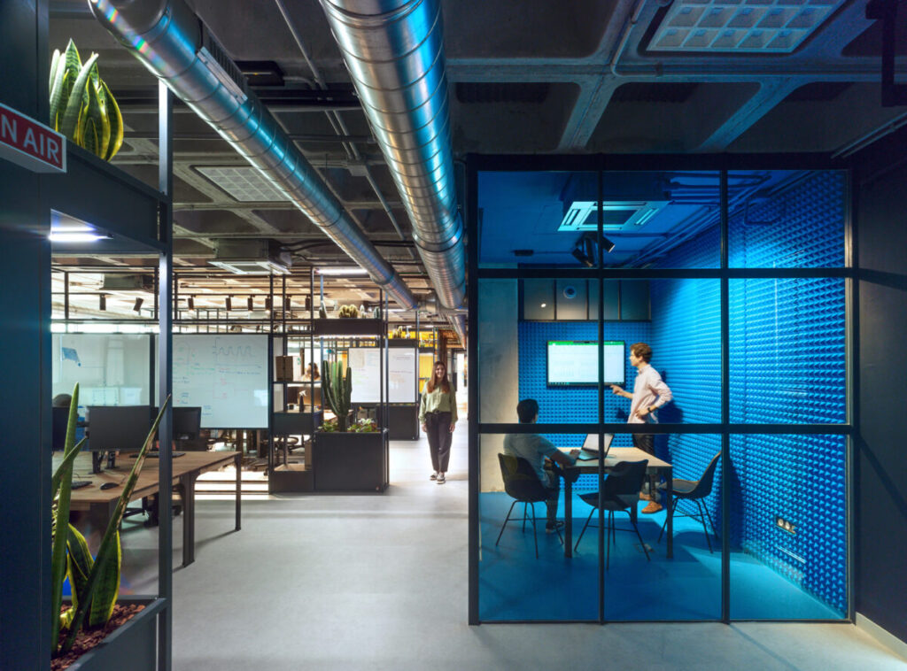 El edificio se alza en el polígono industrial de Molina de Segura (Murcia), pero podría estar en Silicon Valley. Una piel de escamas metálicas recibe al visitante y tamiza la luz, protegiendo un interior casi de ensueño, protagonizado por espacios abiertos y luminosos, zonas comunes amplias y cómodas, jardines integrados en diferentes espacios, y un chill-out en la terraza superior.