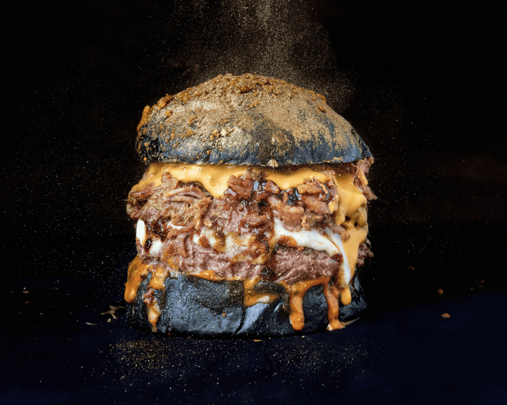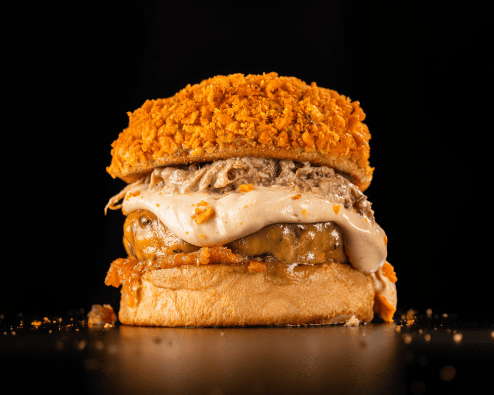Cada capa cumple su función. Una burger contundente y a la vez equilibrada por la combinación de ahumados, un punto sutilmente dulce y un contraste crujiente.